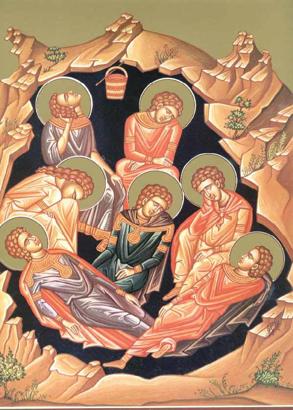 Στὰ μέσα του 3ου αἰῶνα μ.Χ., ὅταν ὁ αὐτοκράτωρ Δέκιος ἄναψε τὸ καμίνι τῶν διωγμῶν καὶ χωρὶς καμιὰ διάκριση βασάνιζε καὶ σκότωνε νέους καὶ γέρους, τότε καὶ οἱ ἑπτὰ παῖδες, Μαξιμιλιανός, Ἐξακουστοδιανός, Ἰάμβλιχος, Μαρτινιανός, Διονύσιος, Ἀντωνῖνος καὶ Κωνσταντῖνος, γιὰ νὰ μὴν ἀρνηθοῦν τὴν πίστη τους, ἀφοῦ διαμοίρασαν τὰ ὑπάρχοντά τους στοὺς φτωχούς, ἔφυγαν ἀπὸ τὴν πόλη καὶ κρύφτηκαν σὲ κάποια σπηλιά, μέχρι νὰ πάψει ὁ διωγμός.