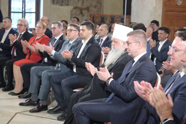 Στην εκδήλωση ομιλίες απηύθυναν επίσης ο Αρχιεπίσκοπος Αχρίδος κ. Στέφανος και η Πρύτανης του Πανεπιστημίου των Σκοπίων «Αγίος Κύριλλος και Μεθόδιος» Δρ. Μπιλιάνα Aνγκέλοβα.
